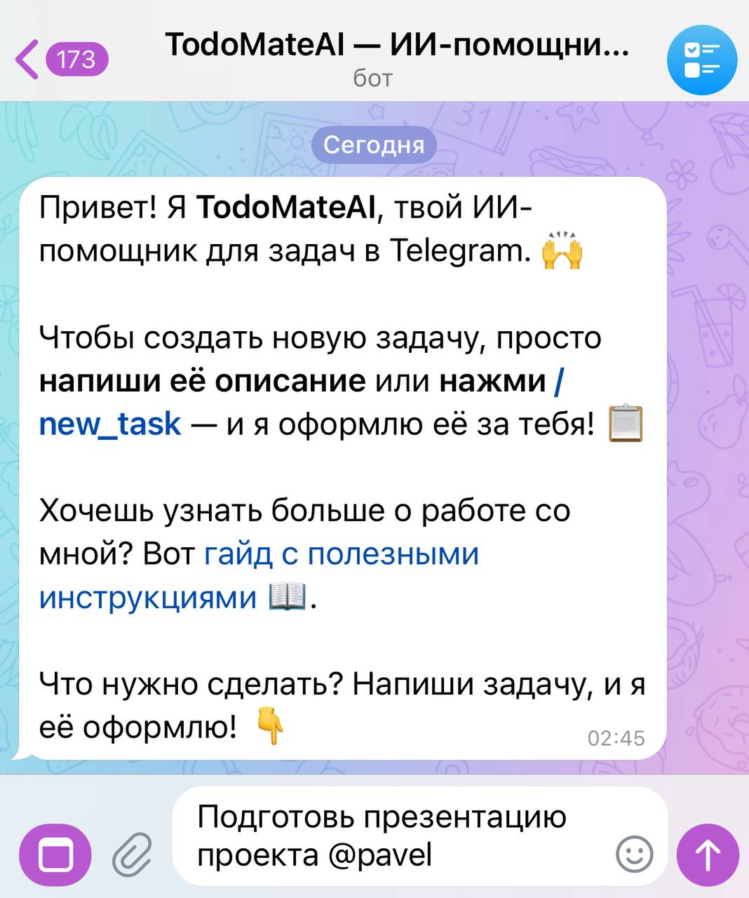 Где создаются: В групповом чате, где добавлен TodoMateAI
